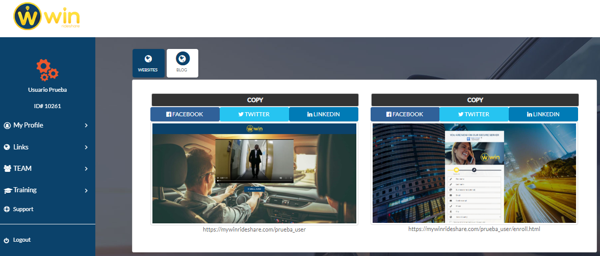 - Ir al menú lateral izquierdo y dar clic en “Links”, también puede acceder a través del acceso directo “Website Link”.