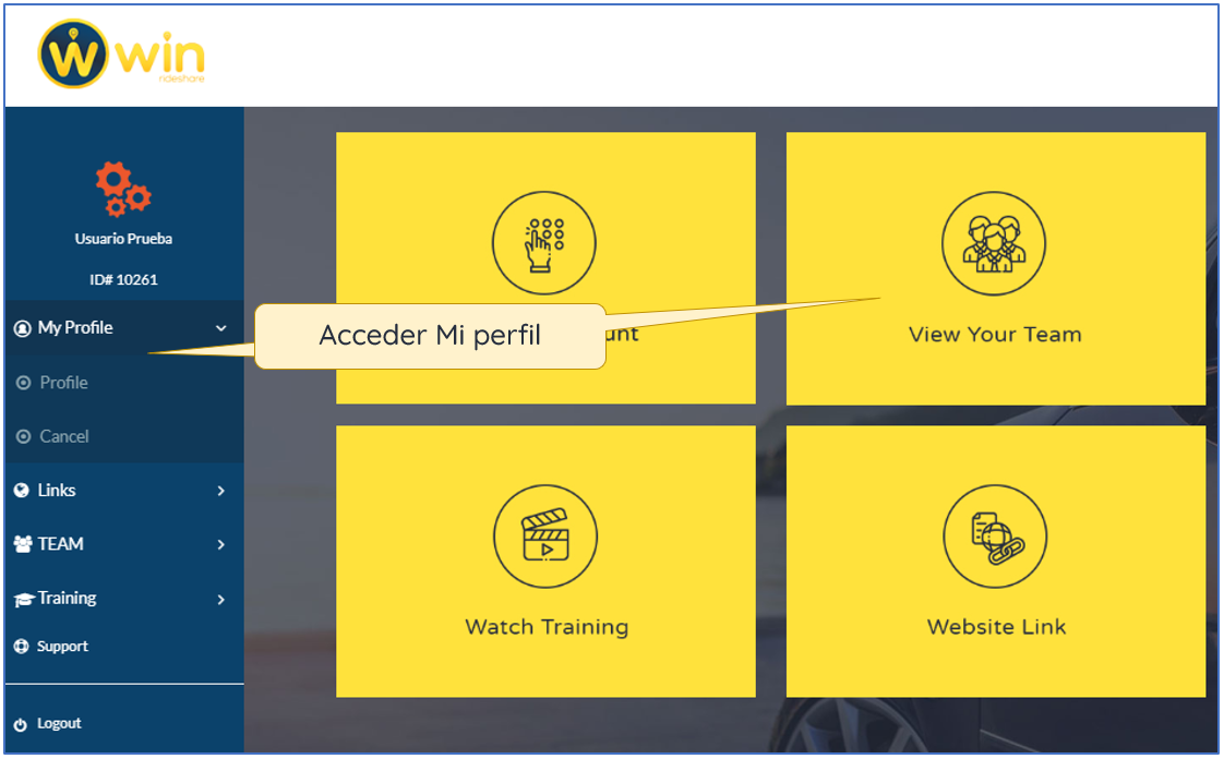 - Si accedes por el menú lateral, de clic en “Profile” o “Perfil”.