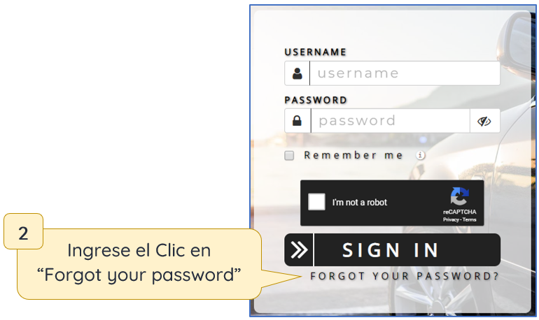 - Clic en “Forgot your password?” u “¿Olvidó su contraseña?”.