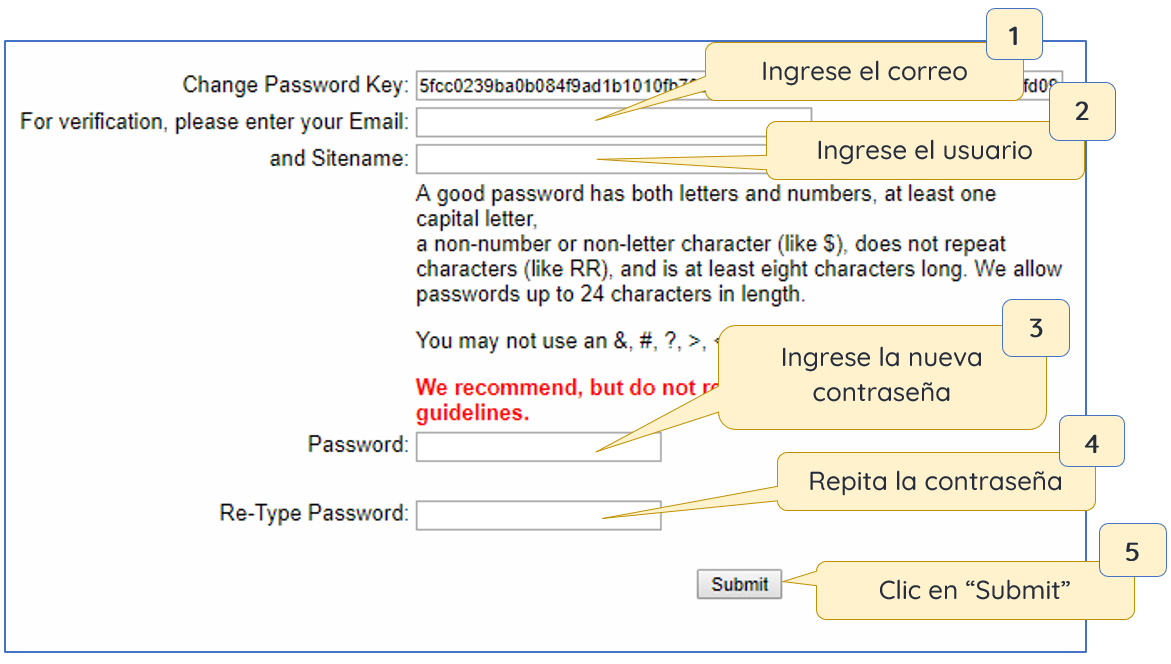 De clic en el enlace mostrado a continuación para que pueda colocar la nueva contraseña: