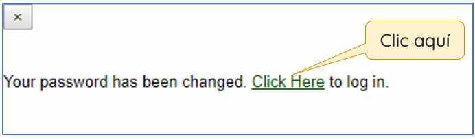 Verá el mensaje de confirmación del cambio de contraseña. De clic en el enlace para ir a la página de inicio de sesión.