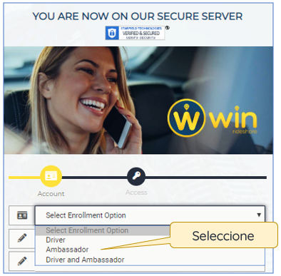 - En el formulario de registro, elija “Ambassador” en la lista desplegable.